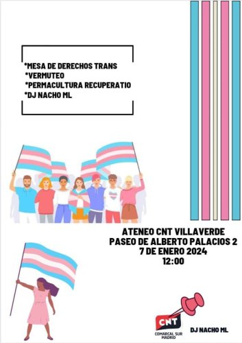La Cooperativa Permacultura Recuperatio organizó la presentación de su proyecto con una mesa redonda sobre derechos trans el domingo 7 de enero a las 12:00 en el Ateneo Libertario de Villaverde.