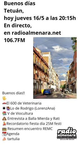 Programa vecinal de radio realizado por vecinas y vecinos de la Ventilla y Tetuán. En esta edición realizamos las secciones habituales como "lo de Rodrigo"; "V de Viocultura"; "el 600 de veterinaria". Especial para esta edición, la visita de nuestra radioescucha Rati, ella nos ayuda a entrevistar a Kike, un cantautor con mucha personalidad. Un placer tenerles en el estudio.