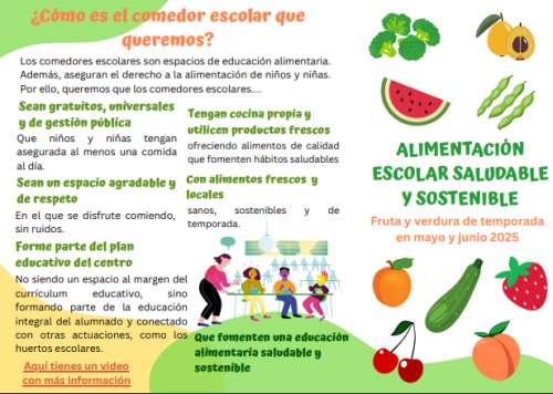 Clara Mozas de Justicia Alimentaria vuelve un nuevo calendario de alimentación escolar saludable y sostenible para los meses de mayo y junio. Además, Clara nos cuenta cómo han de ser los comedores escolares y nos pone algunos ejemplos. No os perdáis las actividades que nos recomienda Clara.